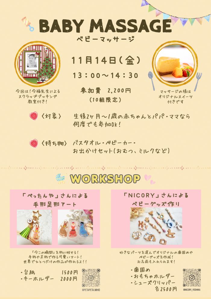 - 対 象:生後2ヶ月~1歳の赤ちゃんとパパ・ママなら何度でも参加OK!